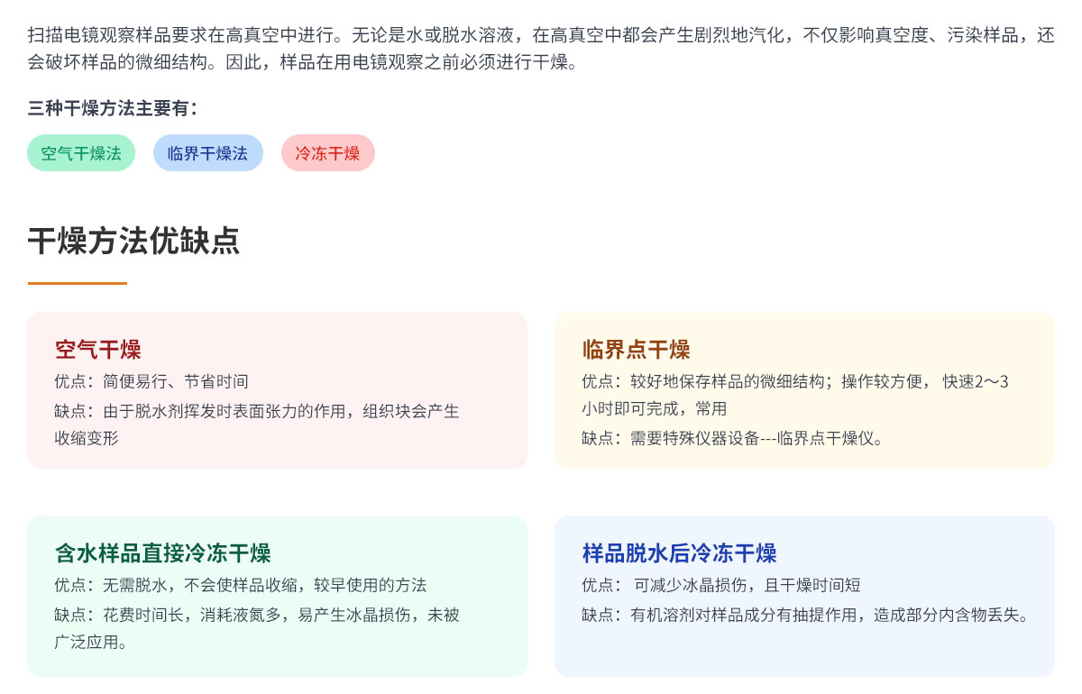 掃描電鏡樣品干燥方法介紹及對比